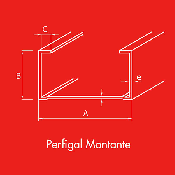 Perfil Tabiques, Montante Normal 60 x 38 x 6 x 0,5 de 2,4 metros de longitud. Perfigal Tabiques es una línea liviana y resistente de amplia versatilidad, ideal para uso estructural.
